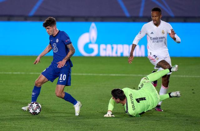 普利希奇在对皇马的欧冠比赛打入精彩一球。